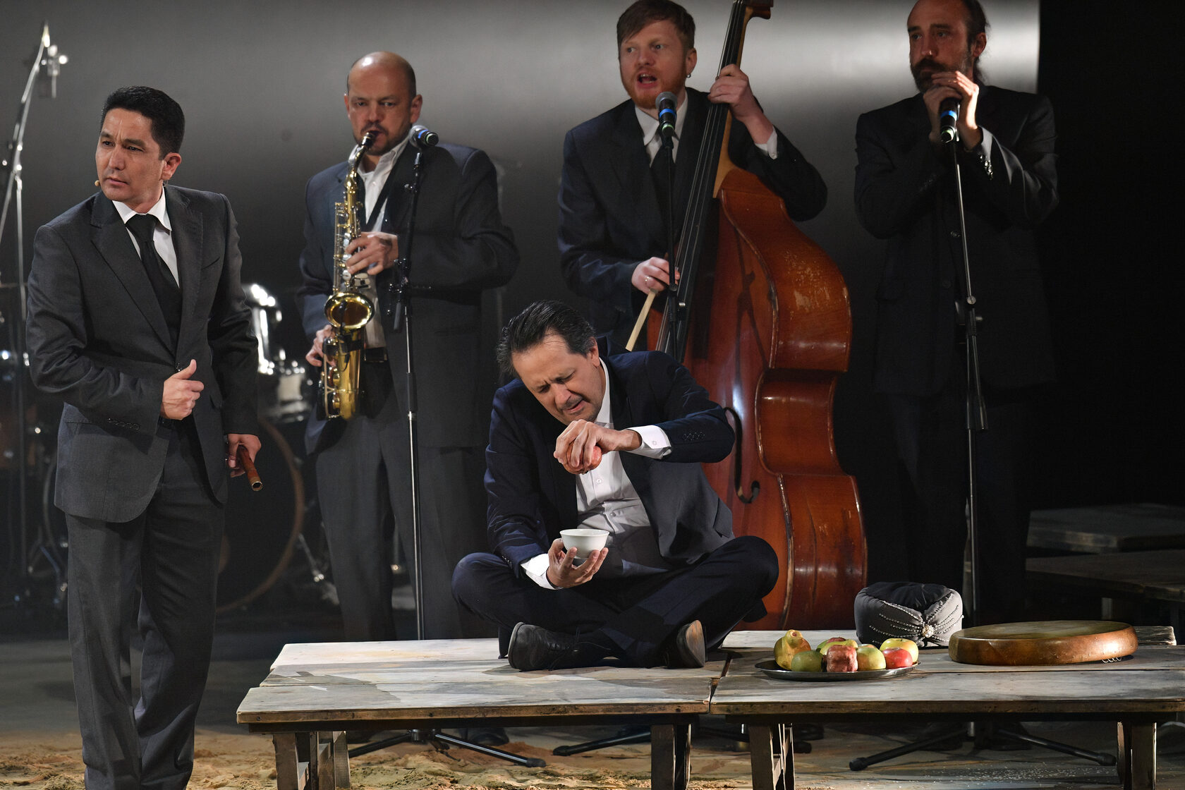 Особое место занимает музыкальное оформление: в спектакле звучит живая музыка — традиционные восточные инструменты и современные ритмы образуют единое звуковое полотно. В постановке задействованы саксофон, най, контрабас, ударные и вокал.