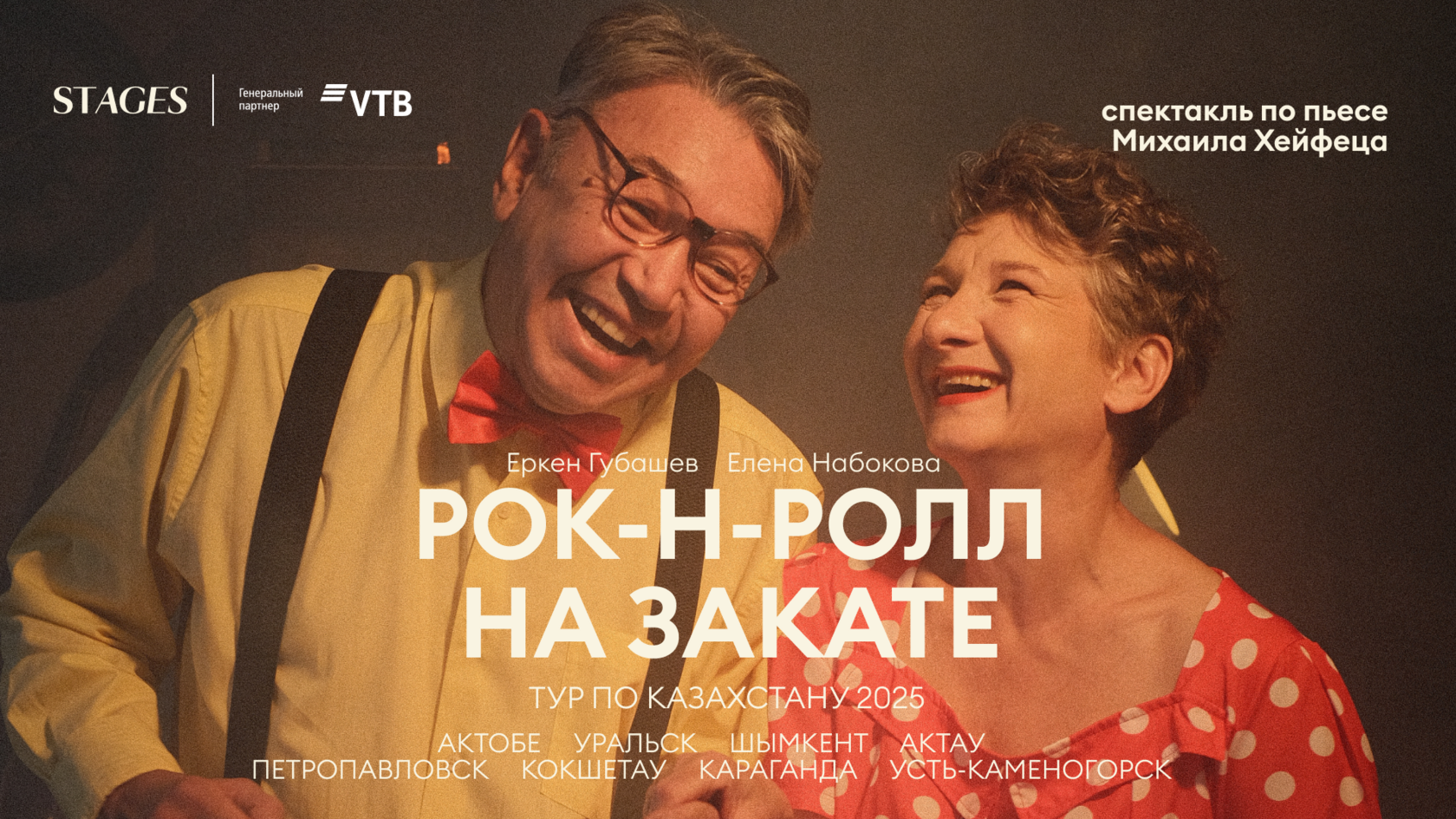 Музыкальный театр Stages объявляет о первом республиканском туре со спектаклем «Рок-н-ролл на закате» — трогательной историей о возрасте, поиске себя и внутренней свободе.